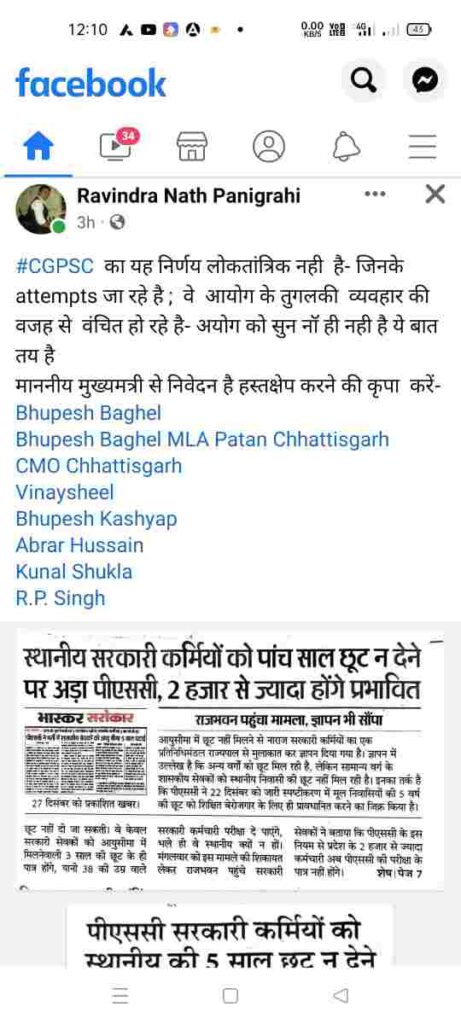 छ ग व्यापम की परीक्षा में मूलनिवासी शासकीय सेवक को 43 वर्ष तक की छूट… पीएससी कर रहा 38 वर्ष में आवेदन रिजेक्ट