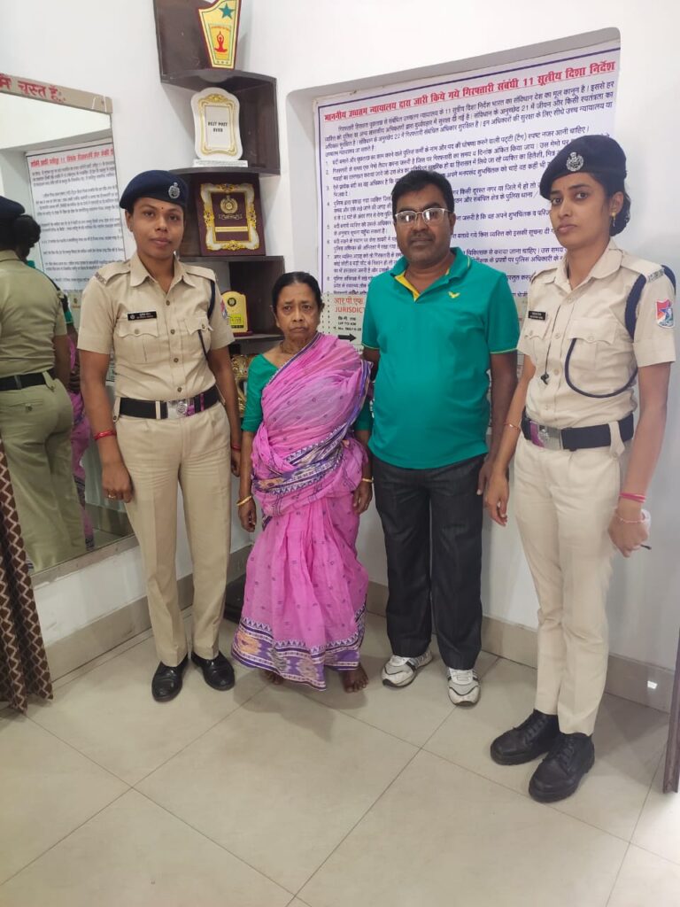 दिनांक-06.03.2022 को एक बुजुर्ग महिला गाड़ी संख्या-12860 गीतान्जली एक्स. के रवाना होने के पष्चात एक बुजुर्ग महिला को बदहवाष अकेले प्लेटफार्म 02 पर घूमते पाया गया जिसे पूछताछ करने पर जानकारी उसे हिन्दी नही आने के कारण कुछ भी बताने मे असमर्थ रही उक्त महिला के पास एक कागज मिला जिसमें एक मोबाइल नंबर मिलने पर उसमे बात करने पर जानकारी मिली कि वह गलती से रायगढ़ मे उतर गई है उसने बताया कि वह मानसिक रूप से पूर्णतः स्वस्थ नही है अतः उसे रोककर रखने के लिए कहा गया जिसपर दिन भर आरपीएफ की महिला आरक्षक उस महिला के साथ रही उल्लेखनीय बात यह है कि वह बार बार थाने से भाग कर प्लेटफार्म मे चली जाती थी और लगातार भागने का प्रयास करती रही परन्तु आर.पी.एफ. के लोग उसके पीछे पीछे भागते नजर आए। आखिरकार उस महिला के दामाद श्री अरविंद सरकार पिता-अमूल्य सरकार उम्र-44 वर्ष निवासी-गांगुली परालेन घुरनी कृष्णानगर जिला-नदिया पष्चिम बंगाल दोपहर बाद आर.पी.एफ.थाने पहुचे तब जाकर उसे सही सलामत उन्हे सौपा गया। इसके बाद आर.पी.एफ ने राहत की सांस ली।