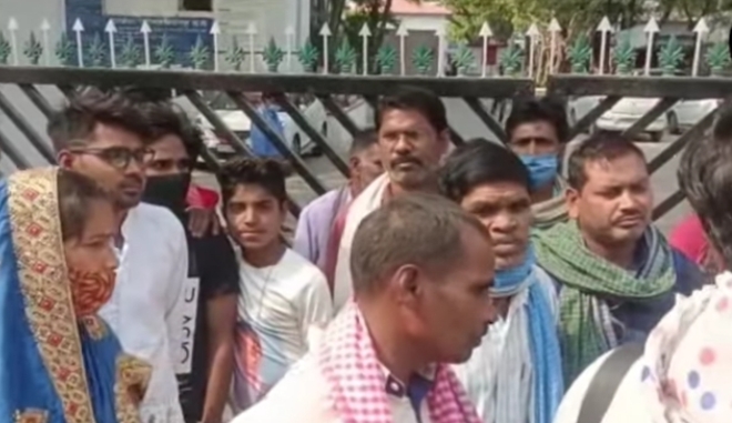 ग्रामीणों के साथ विरोध प्रदर्शन करने के लिए स्कूली बच्चें भी पहुंचे