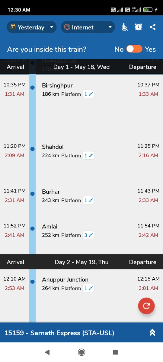 सारनाथ ट्रेन उसलापुर में पहुंचने का समय 3 बजे का है जो अब सुबह 6 बजे पहुंचेगी। इसी प्रकार अनूपपुर 12 30 बजे का है वह अब 3 बजे सुबह पहुंचेगी।