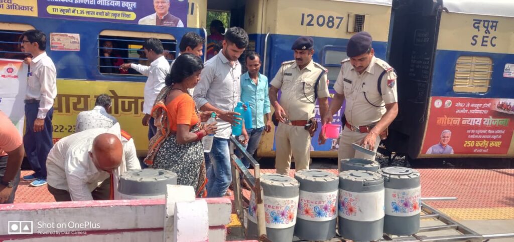 इतवारी के प्रभारी निरीक्षक सकल देव कुमार ने वायरलेस न्यूज़ को बताया कि आजादी के 75वें अमृत महोत्सव के उपलक्ष्य में दिनांक 25 जून 22 को प्रधान मुख्य सुरक्षा आयुक्त रेल्वे सुरक्षा बल बिलासपुर श्री ए एन सिन्हा एवं वरिष्ठ मंडल सुरक्षा आयुक्त रेसुब नागपुर श्री पंकज चुघ के दिशा निर्देशन में रेल यात्रियों को रेलवे सुरक्षा बल इतवारी के बल सदस्यों द्वारा इतवारी दुर्ग एवं इतवारी छिंदवाड़ा लोकल ट्रेन में रेल यात्रियों को इतवारी स्टेशन पर जल सेवा के तहत ठंडा पेय जल पिलाकर यात्रियों को तृप्त करने के साथ साफ सफाई पर भी ध्यान देने की आवश्यकता पर यात्रियों को समझाइश दिया गया। इस दौरान निरीक्षक सकलदेव कुमार, सहायक उपनिरीक्षक केके निकोडे ,महिला आरक्षक मेघा सिंह एवं पोस्ट के बल सदस्य जल वितरण कार्यक्रम में अपनी सहभागिता दर्ज कराई। लोग भी रेल सुरक्षा बल इतवारी के इस नेक कार्य के लिए बल के अधिकारियों कर्मचारियों को साधुवाद देते रहे। यही नही वृक्ष का हमारे जीवन पर कितना उपकार है और हमे पेड़ो के प्रति कृतगता बनाये रखने के लिए पेड़ लगाकर लोगो को प्रेरित किया जा रहा है।