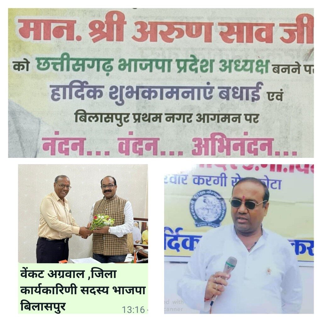 भाजपा कार्यालय में नवनियुक्त प्रदेश अध्यक्ष अरूण साव ने भाजपा पदाधिकारी व कार्यकर्ताओं को संबोधित करते हुए कहा कि मुझे हमारे शीर्ष नेतृत्व ने महति जिम्मेदारी दी है मैं इस दायित्व को पूर्ण रूप से निर्वहन करते हुए आगामी 2023 के विधानसभा चुनाव में भाजपा को पुनः सत्ता में वापसी के लिए जी तोड़ मेहनत करने का प्रयास करूंगा। इस लक्ष्य की प्राप्ति के लिए मैं सभी कार्यकर्ताओं के सहयोग की अपेक्षा रखता हूॅ।