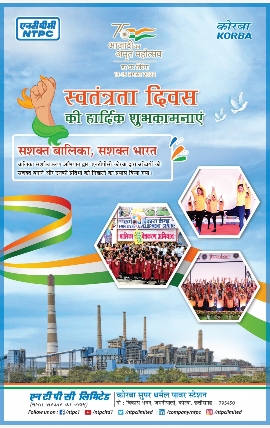 स्वतंत्रता के 75 वीं वर्षगांठ आज़ादी के अमृत महोत्सव के अवसर पर एनटीपीसी कोरबा के मुख्य महाप्रबंधक पी एम जेना ने मानसरोवर स्टेडियम में देशवासियों को स्वतंत्रता दिवस की बधाई के साथ सशक्त बालिका, सशक्त भारत का संदेश देते हुए ध्वजारोहण किया।देश भक्ति के भावना एवं छात्र छात्राओं के जुनून के सामने झमाझम बारिश भी फीकी पड़ते नजर आई।