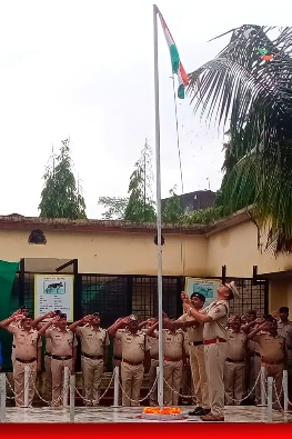 इस अवसर पर सभी आरपीएफ जवानों के द्वारा राष्ट्रीय ध्वज तिरंगा को हर्षोलास वातावरण में सलामी दी।