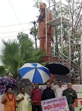 बिलासपुर इकाई के द्वारा पूरे दिन बेहद वर्षा के बावजूद पुराना बस स्टैंड विशाल चौक में स्थित डॉक्टर श्यामा प्रसाद मुखर्जी के चित्र पर माल्यार्पण किया गया