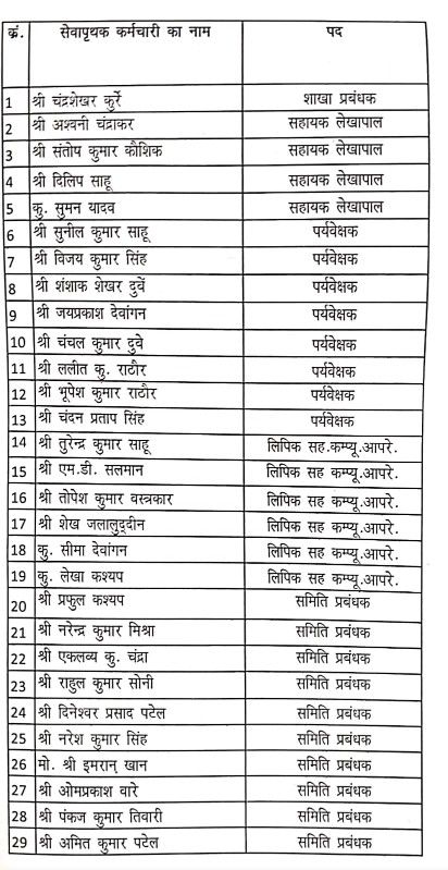 माननीय उच्च न्यायालय में पंकज तिवारी एवं अन्य कुल 29 पूर्व में बर्खास्त कर्मचारियों ने उच्च न्यायालय बिलासपुर में पिटीशन क्रमांक 3346/2020 दायर किया। उक्त पिटीशन के विरुद्ध रिट अपील प्रकरण क्रमांक 307/2025 उच्च न्यायालय में दायर किया गया। इस पर सुनवाई करते हुए हाईकोर्ट ने प्राकृतिक न्याय के सिद्धांत अनुसार बैंक को आदेश प्राप्ति दिनांक से बैंक को विभागीय कार्यवाही किए जाने का आदेश पारित किया। इसी परिपेक्ष में बैंक के प्राधिकृत अधिकारी की अध्यक्षता में हुई स्टाफ कमेटी की बैठक में निर्णय लिया गया कि माननीय न्यायालय के आदेश अनुसार समय अवधि में कार्यवाही पूर्ण की जाए। इसके लिए बैंक के सीईओ के द्वारा जांच टीम बनाई गई, जिसमें 4 वरिष्ठ शाखा प्रबंधकों को जांच की जिम्मेदारी सौंप गई। इनके द्वारा समय अवधि में जांच कर जांच प्रस्तुत किया गया। इसमें कर्मचारियों की व्यक्तिगत सुनवाई भी की गई । इसके उपरांत बैंक के स्टाफ कमेटी दिनांक 04/08/2025, 05/08/2025 एवं 08/08/2025 के निर्णय अनुसार 01 शाखा प्रबंधक 04 सहायक लेखापाल 08 पर्यवेक्षक 6 लिपिक सह कंप्यूटर ऑपरेटर और 10 समिति प्रबंधकों कुल 29 कर्मचारियों को पुनः सेवा से पृथक किया गया । इसी प्रकरण को उपरोक्त कर्मचारियों के द्वारा माननीय सुप्रीम कोर्ट में भी चैलेंज किया गया। जिसे माननीय सुप्रीम कोर्ट ने दिनांक 12/08/2025 को प्रकरण खारिज कर दिया गया। बैंक के द्वारा उपरोक्त प्रकरण में माननीय हाई कोर्ट में केविएट दायर कर दिया गया है।