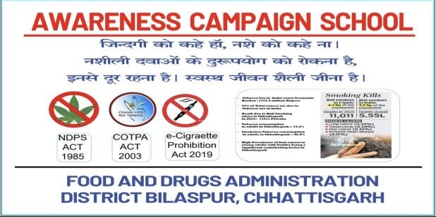 बिलासपुर (वायरलेस न्यूज) नियंत्रक खाद्य एवं औषधि प्रशासन के निर्देशानुसार, सहायक औषधि नियंत्रक, बिलासपुर के मार्गदर्शन में आज दिनांक 29/08/25 को जिला बिलासपुर के खाद्य एवं औषधि प्रशासन के औषधि निरीक्षक श्री सुनील पंडा, श्रीमती सोनम जैन, श्रीमती कामेशवरी पटेल, श्रीमती सुमन लता कंवर द्वारा मंगला क्षेत्र में स्थित होली क्रॉस स्कूल में 9 से 12 कक्षा के छात्र -छात्राओं को