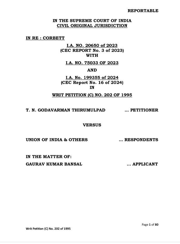 रायपुर, (अमित मिश्रा वायरलेस न्यूज 18 नवम्बर) माननीय सर्वोच्च न्यायालय के मुख्य न्यायाधीश की अध्यक्षता वाली तीन सदस्यीय पीठ के मुख्य द्वारा 17 नवम्बर 2025 को पारित ऐतिहासिक आदेश ने देशभर के वन प्रबंधन, टाइगर रिज़र्व संचालन और मानव–वन्यजीव संघर्ष से प्रभावित परिवारों के लिए नई दिशा तय कर दी है। आदेश में कई महत्वपूर्ण निर्देश दिए गए हैं, जिनमें तत्काल प्रभाव से लागू किए जाने योग्य प्रावधान भी शामिल हैं। रायपुर स्थित वन्यजीव प्रेमी नितिन सिंघवी ने इस संबंध में मुख्य सचिव तथा अतिरिक्त मुख्य सचिव (वन एवं जलवायु परिवर्तन) को विस्तृत पत्र लिखकर आदेश के तात्कालिक क्रियान्वयन की माँग की है।