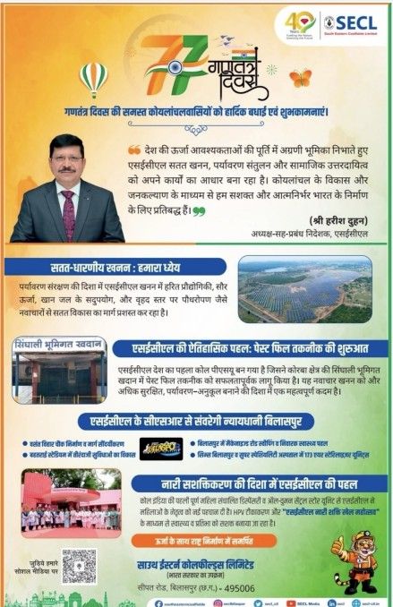 कार्यक्रम की की शुरुआत में अतिथियों का भंगरा नृत्य से जोरदार स्वागत किया गया साथ ही एसईसीएल कर्मियों द्वारा एक स्वागत गीत की सुंदर प्रस्तुति भी दी गई। इसके साथ छत्तीसगढ़ी लोकनृत्य की रंगारंग प्रस्तुतियों से वातावरण पूर्णतः उत्सवमय एवं भव्य बन गया।